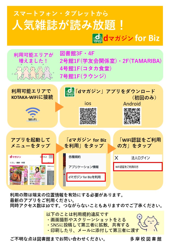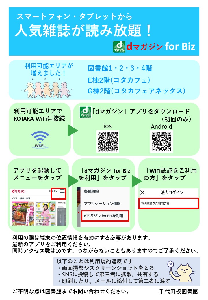 「dマガジン for Biz」は学内の利用可能エリアで、