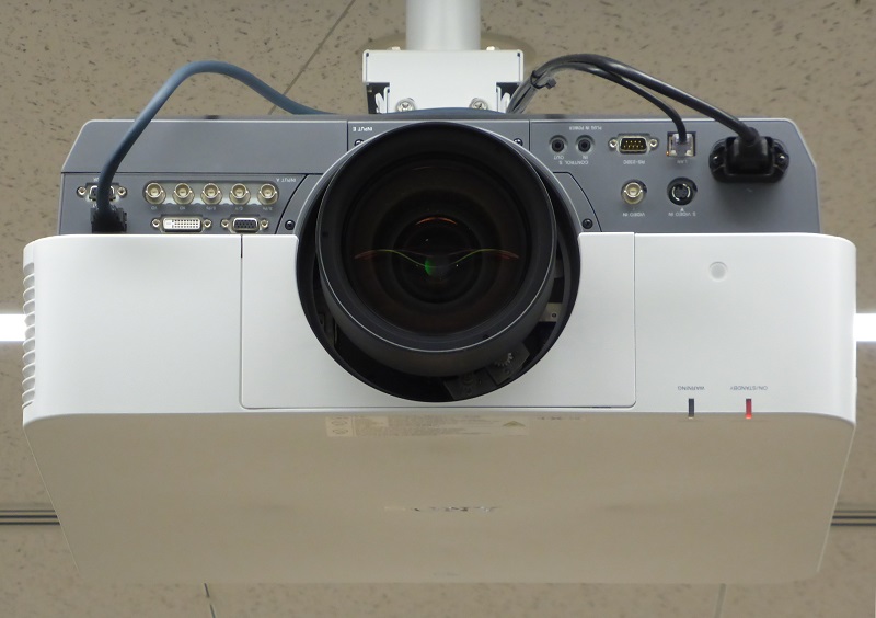 パソコンやビデオ(BD、DVD)の映像は、正面スクリーン及び学生間モニター(中間モニター)に投影する事が出来ます。